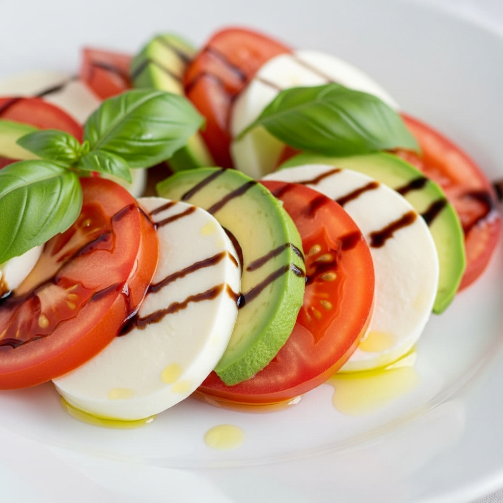 The beauty of Caprese lies in its simplicity, so choosing good quality ingredients is key. Fresh mozzarella offers a soft, milky texture that pairs perfectly with juicy, ripe tomatoes. The basil adds that essential aromatic, peppery note. And the avocado? It brings a wonderful creaminess and a touch more substance to make this salad truly satisfying.