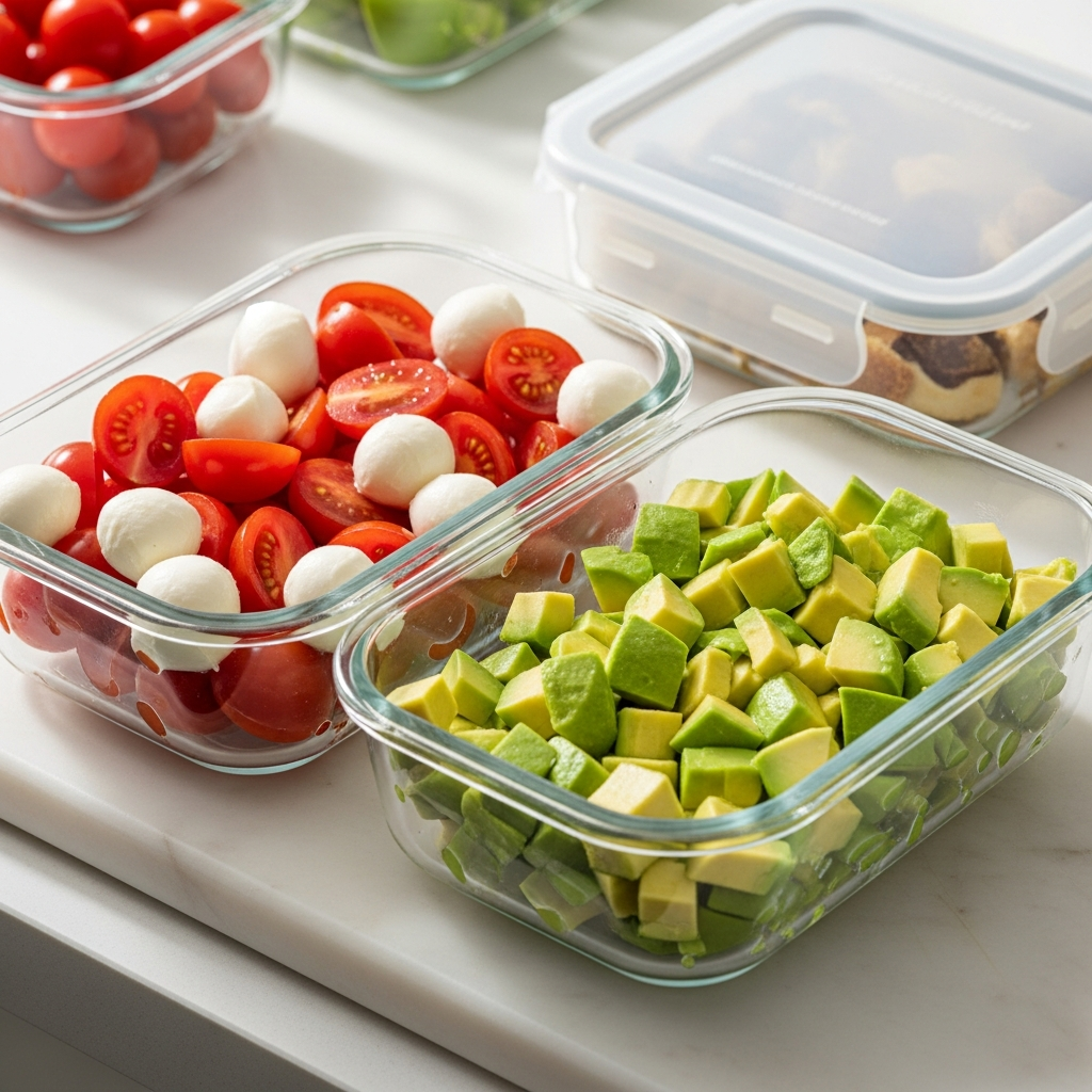For meal prep, you can definitely get a head start! Halve your tomatoes and mozzarella, and store them in separate containers in the fridge. Dice your avocado just before you plan to eat. Keep the basil whole and add it, along with the oil, glaze, salt, and pepper, right before you serve. This keeps everything fresh and vibrant until mealtime.