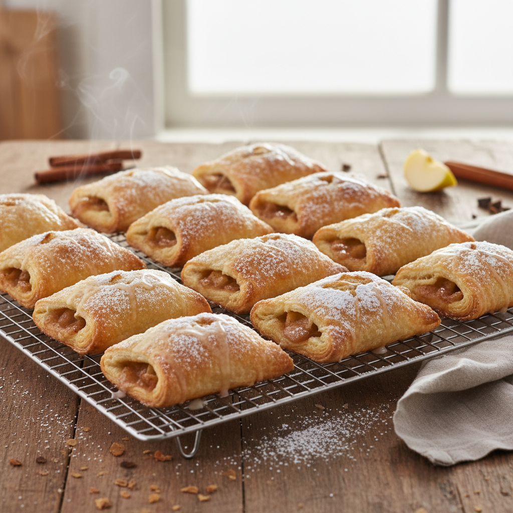 - Cool and Serve Transfer the baked turnovers to a wire cooling rack. Let cool for at least 15-20 minutes before dusting with powdered sugar, if desired, and serving warm.