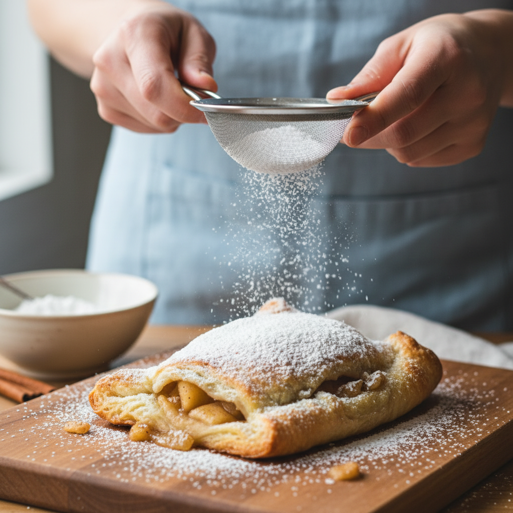 - Glaze Option Instead of powdered sugar, mix powdered sugar with a little milk or lemon juice for a simple glaze to drizzle over warm turnovers.
