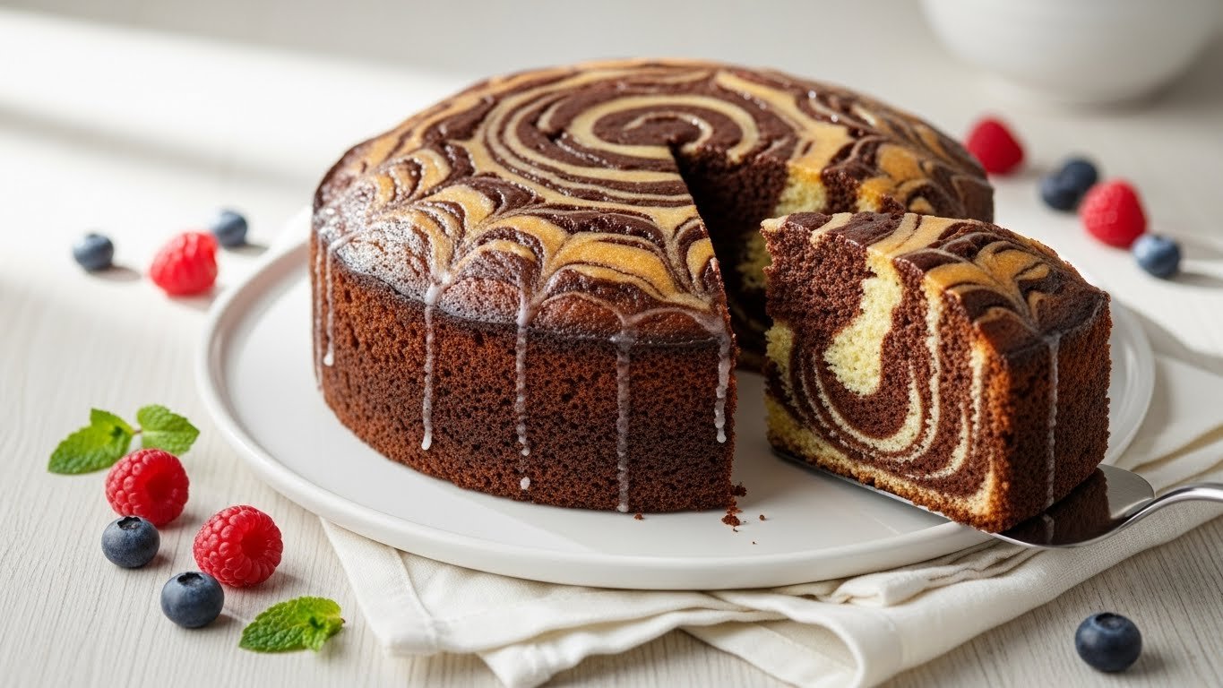 Marble cake is a classic dessert that brings together soft vanilla and rich chocolate in a beautiful swirl pattern. This recipe is simple, warm, and perfect for any occasion—from everyday tea time to special celebrations. With its moist crumb and eye-catching design, it’s sure to impress everyone who tastes it.