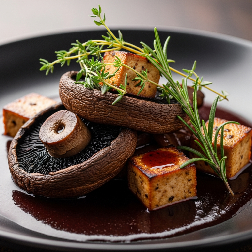 This idea leans into Western culinary traditions by using a red wine reduction as the braising medium. Large portobello mushrooms are sliced thick to provide a meaty bite, while extra-firm tofu is cubed and seared until crisp. The addition of tomato paste, fresh thyme, and rosemary transforms the braising liquid into a thick, savory gravy. This preparation is reminiscent of a classic beef bourguignon, offering a sophisticated and hearty vegetarian alternative for a formal dinner.