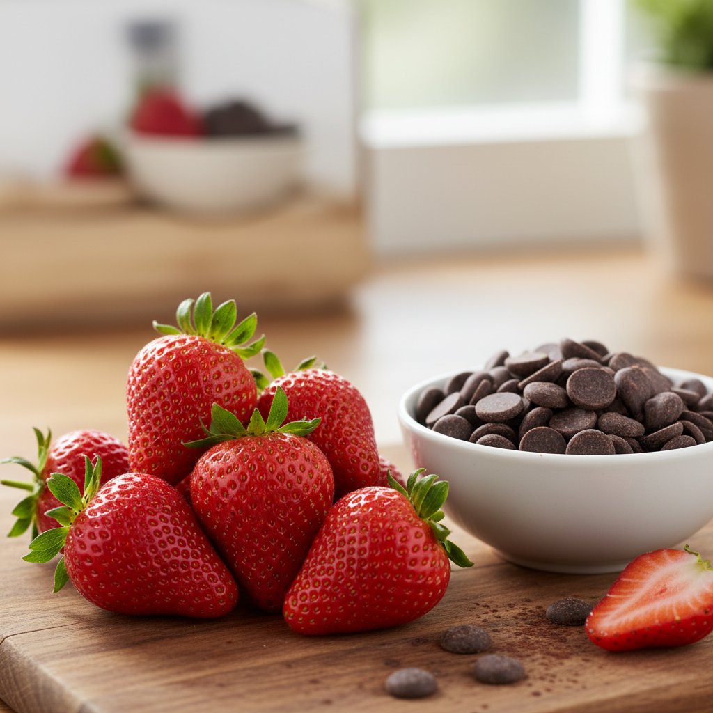 - Fresh Strawberries Choose firm, ripe, vibrant red strawberries with their green stems intact. Avoid any bruised or overly soft berries. Wash them gently and pat them completely dry. Moisture is the enemy of melted chocolate!