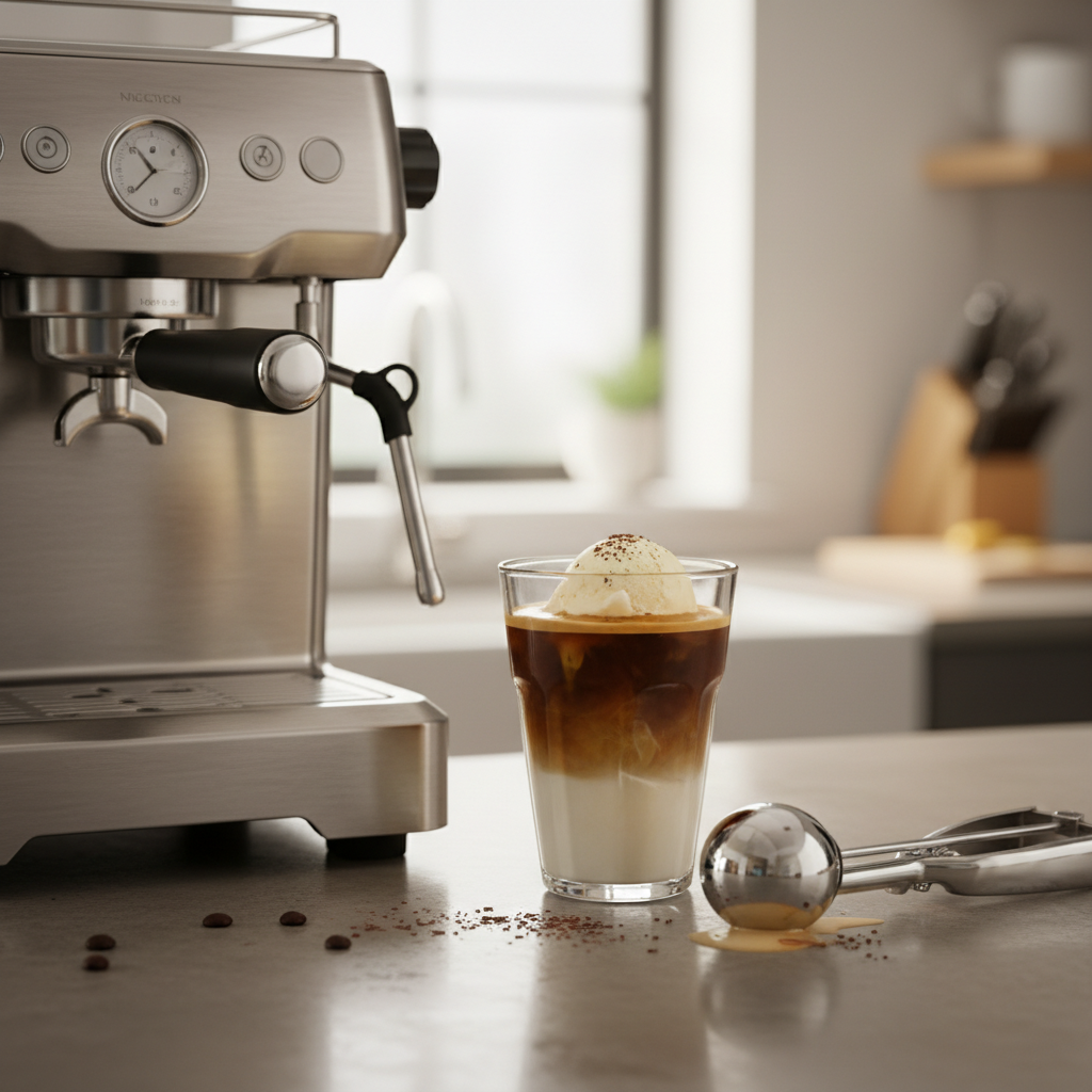 • Small Glass or Mug– A clear, heat-resistant glass allows you to appreciate the beautiful layers as the espresso melts the ice cream.