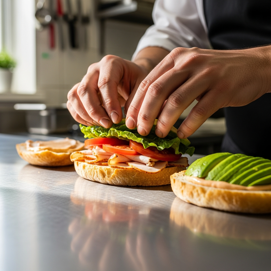 - Layer Smart: Place tougher, drier ingredients (like cheese or meat) against the bread first. Then add wetter ingredients (like tomato) in the middle, away from the bread.