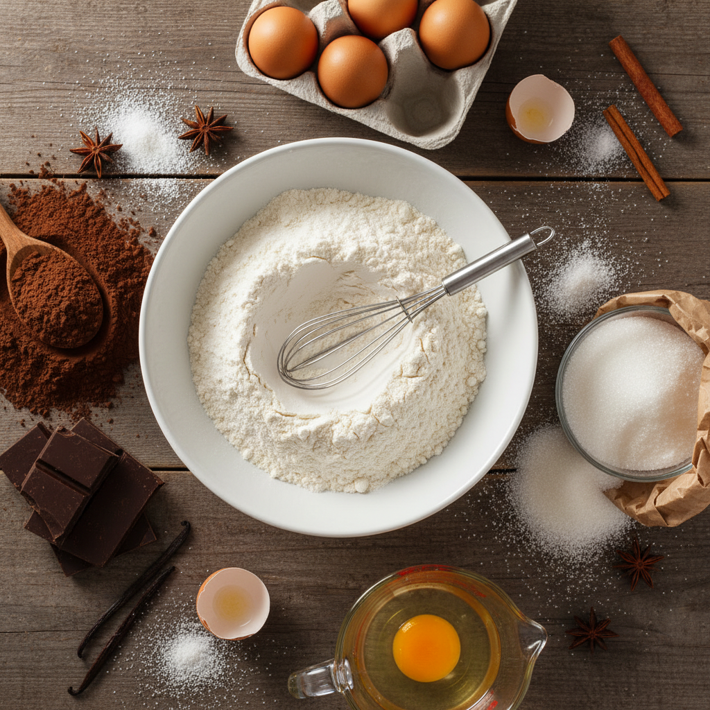 - Combine Dry Ingredients: In a large bowl, whisk together the flour, sugar, cocoa powder, baking soda, baking powder, and salt. Make sure there are no lumps.