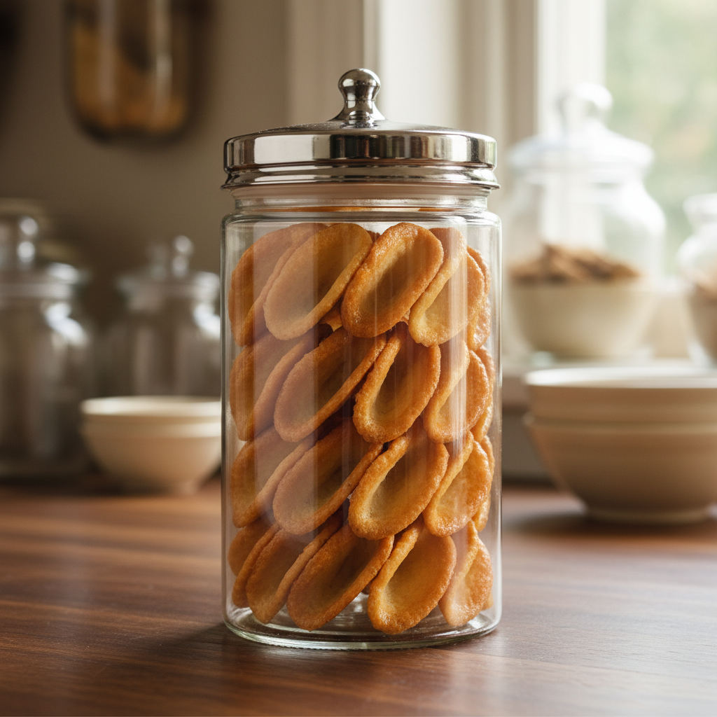 - Cool and Store Let the shaped tuiles cool completely on the rolling pin or bottle until they hold their shape. Once cooled, carefully transfer them to an airtight container. Repeat with the remaining batter.