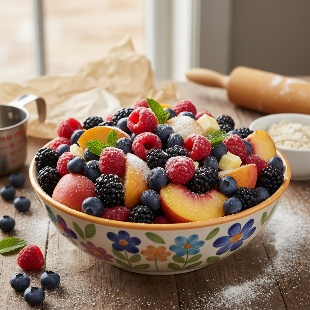 - 6 cups fresh or frozen mixed berries (or sliced peaches, apples)