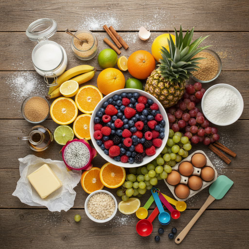 - Fresh or Frozen Fruit This recipe shines with ripe, seasonal fruit. Berries (blueberries, raspberries, blackberries), peaches, apples, or a combination work wonderfully. If using frozen fruit, there’s no need to thaw it first, but you might need to add a few extra minutes to the baking time.