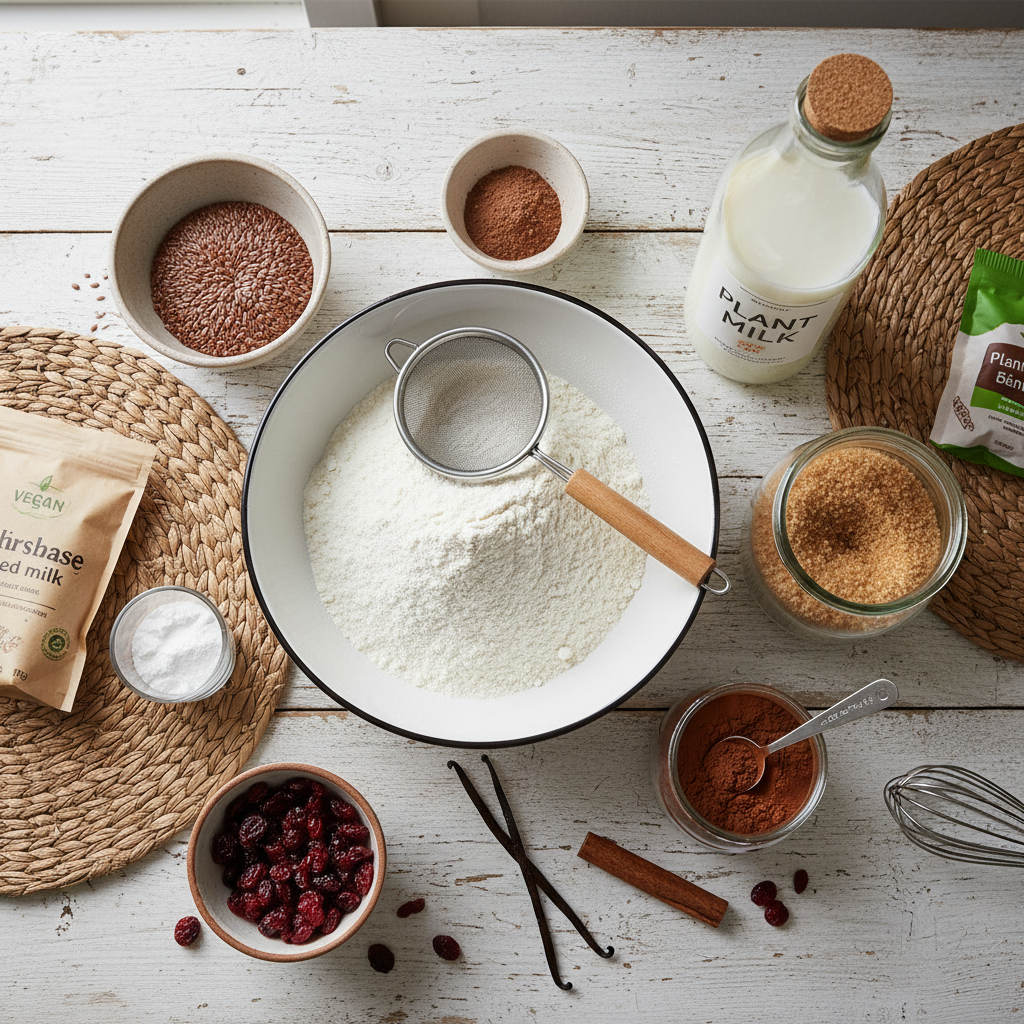 - Add Wet Ingredients Pour the plant-based milk, vegetable oil, and vanilla extract into the dry ingredients. Mix with a whisk or spatula until just combined. Be careful not to overmix! A few small lumps are okay.