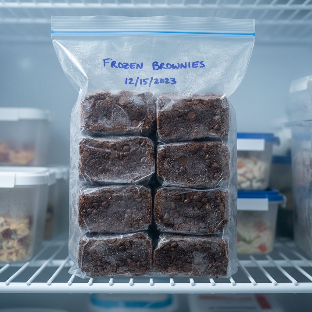 - Freezing Baked Brownies Once completely cooled, cut the brownies into individual squares. Wrap each square tightly in plastic wrap, then place them in a freezer-safe bag or airtight container. They will keep in the freezer for up to 2-3 months.