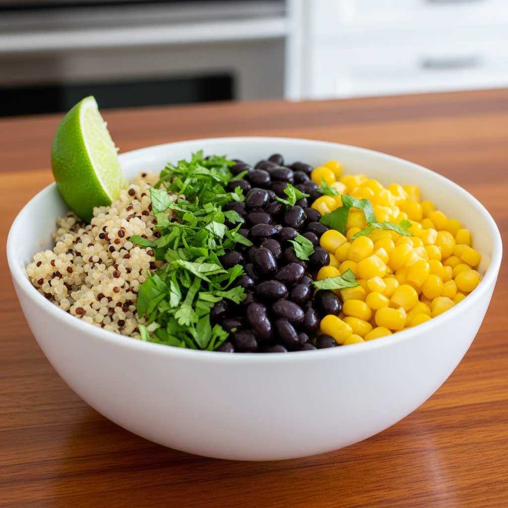 This plant-based power bowl is perfect for summer lunches. Quinoa provides a complete protein source, while black beans add fiber and heartiness. Tossed with corn, red onions, and a lime-cilantro dressing, this salad is refreshing and can be served cold. It is an excellent option for meal prep as the flavors deepen after a few hours in the refrigerator.