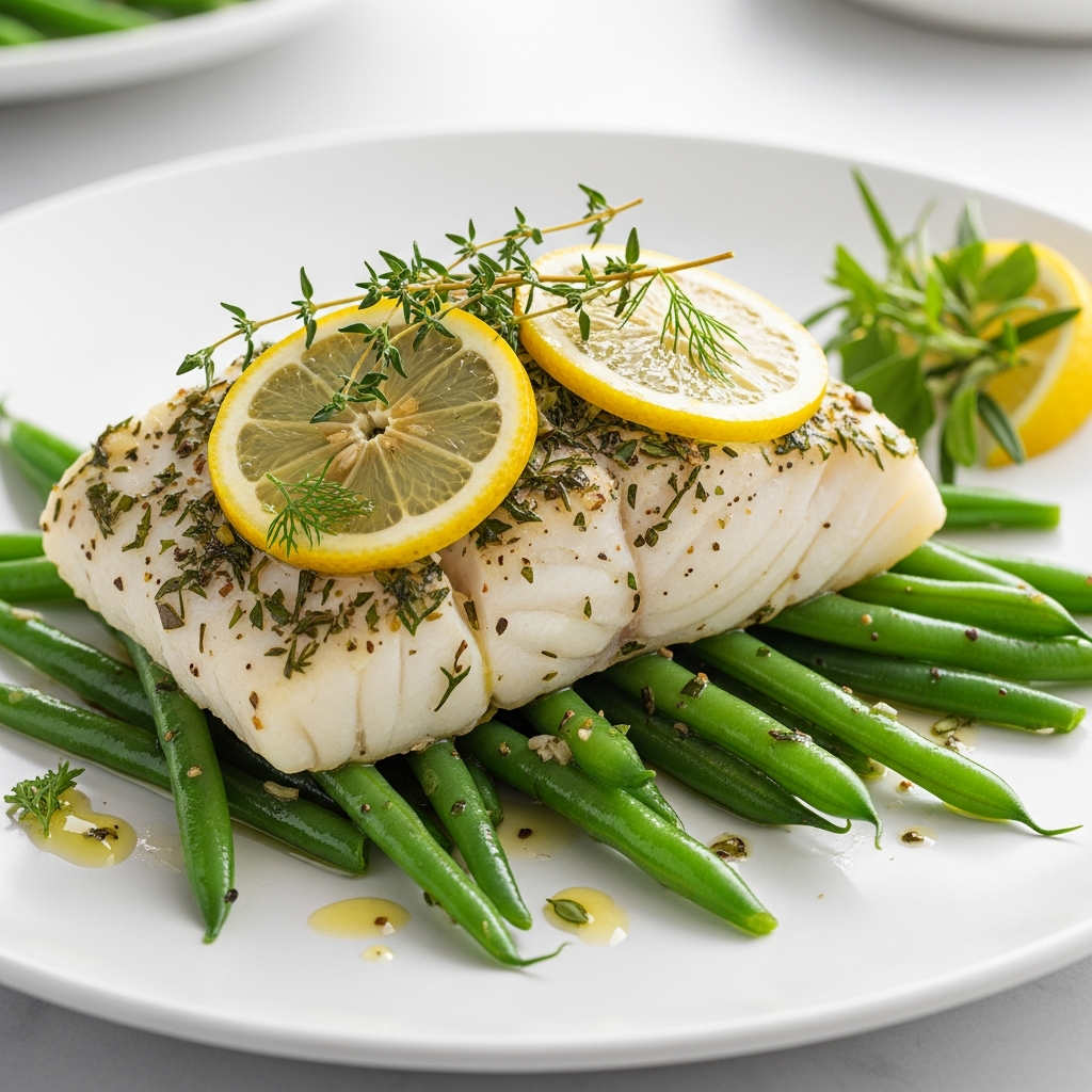 Cod is a mild white fish that is low in fat and high in protein. Baking it with fresh dill and lemon slices keeps the preparation simple and clean. Served with a side of steamed green beans, this meal is a light and sophisticated option for a healthy summer evening.