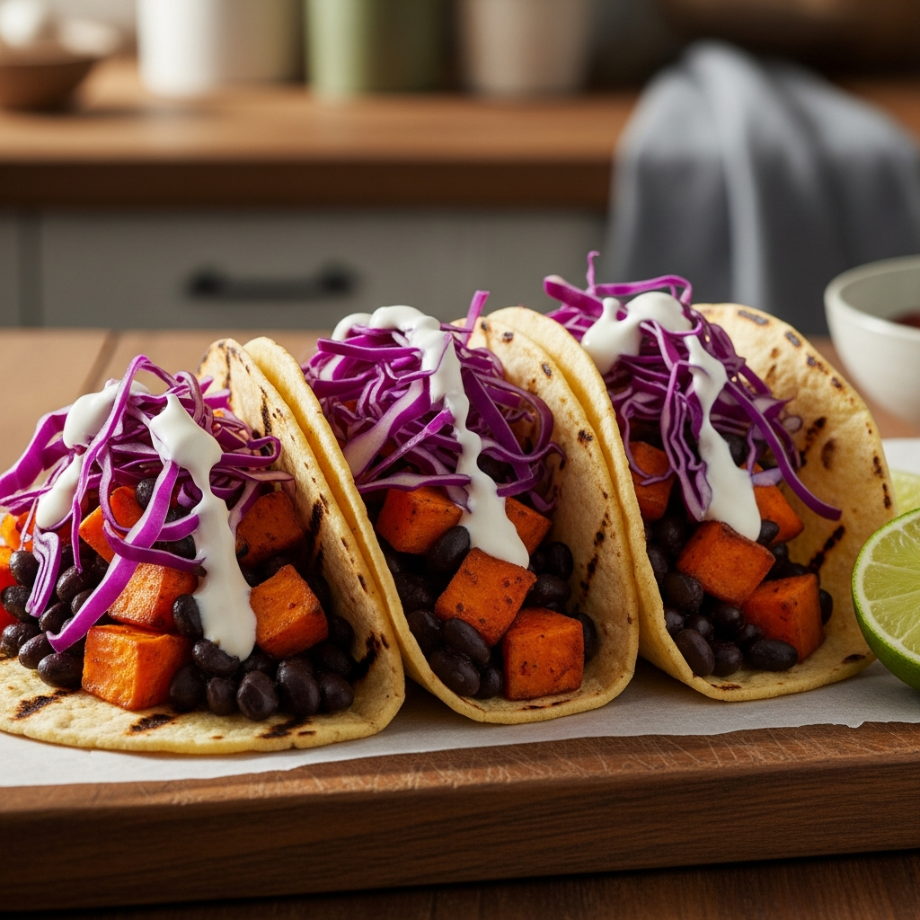 Roasted sweet potato cubes provide a natural sweetness that pairs perfectly with savory black beans. Served in corn tortillas with a cabbage slaw and a squeeze of lime, these tacos are a fiber-rich, plant-based meal that is both filling and nutritious for a summer night.