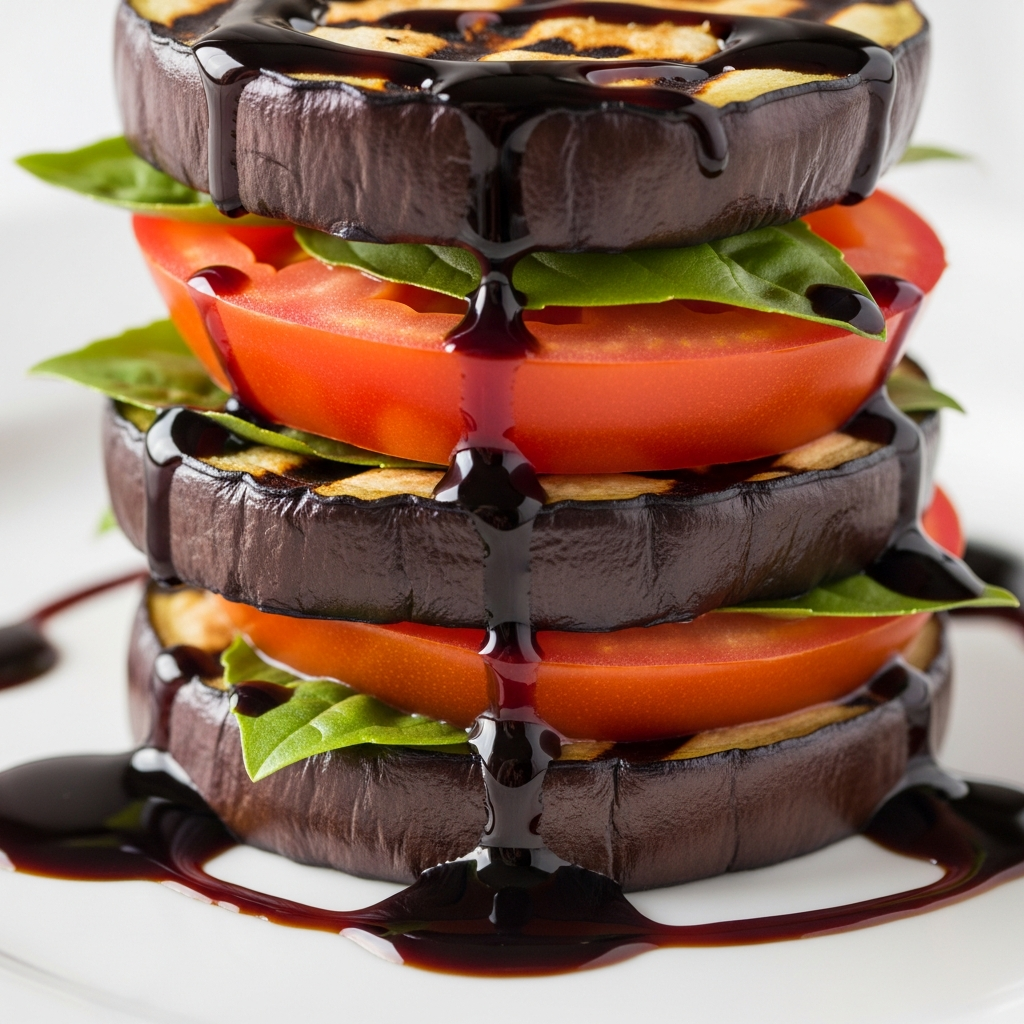 Thick slices of eggplant are grilled or roasted and stacked with fresh tomato slices and a hint of goat cheese or nutritional yeast. This dish is aesthetically pleasing and highlights the best of summer garden produce. It is light, low-carb, and full of antioxidants.