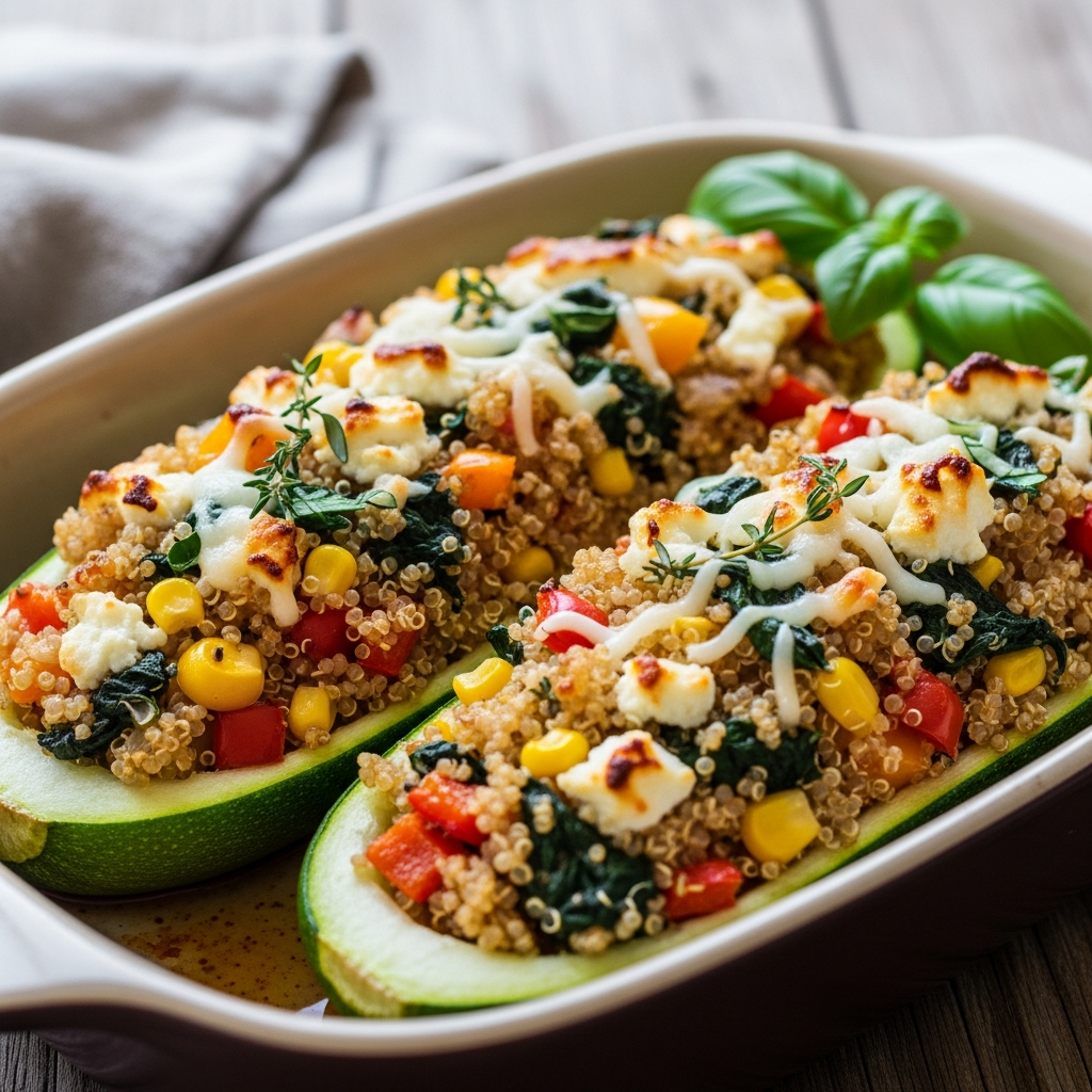 Hollowed-out zucchinis serve as the perfect vessel for a mixture of quinoa, chopped vegetables, and herbs. Baking them until the zucchini is tender creates a meal that is rich in texture and nutrients. It is an excellent way to use up an abundance of garden zucchini.