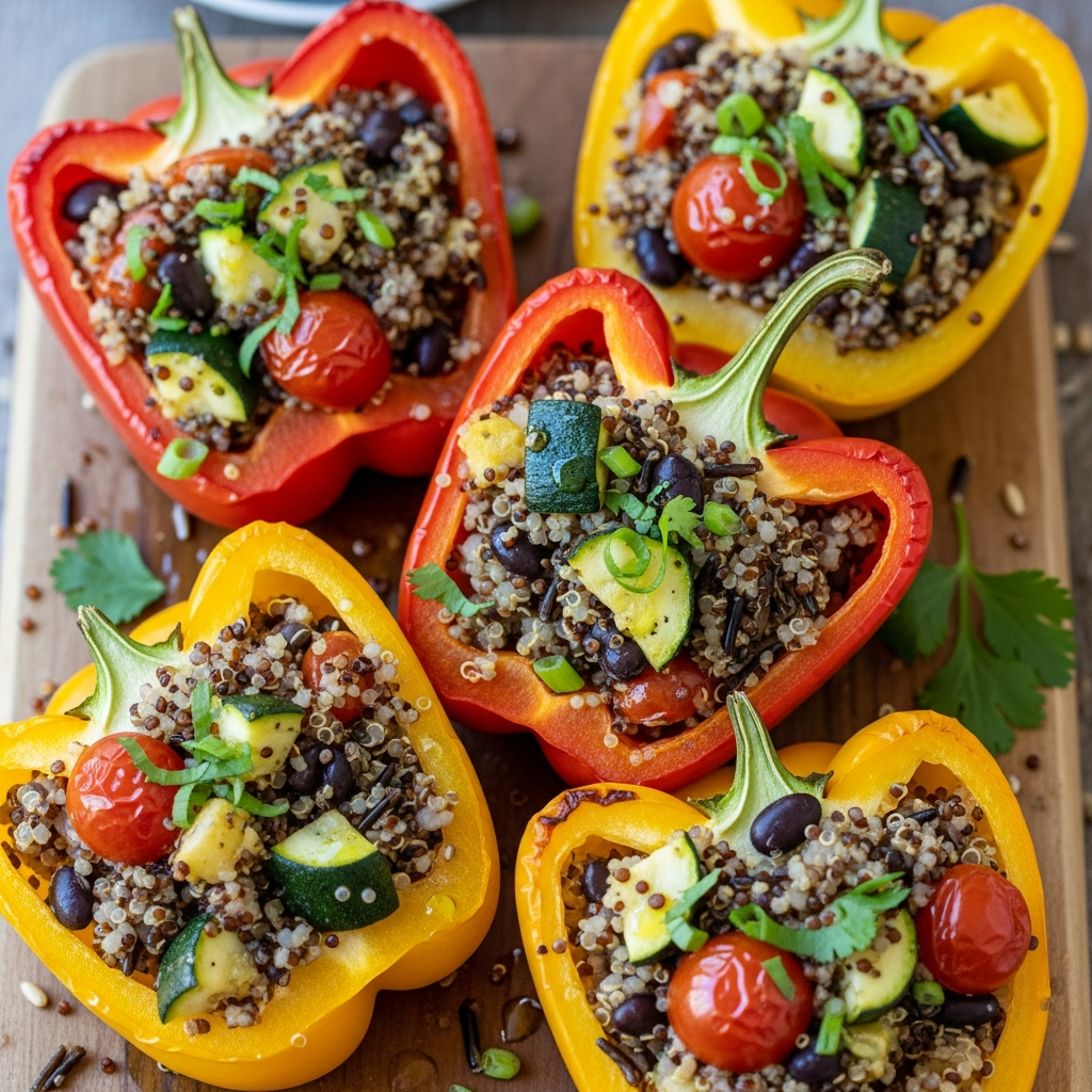 Bell peppers are stuffed with a mixture of cooked farro, Kalamata olives, cucumbers, and a touch of goat cheese. This vegetarian option is rich in fiber and Mediterranean flavors. It can be prepared in advance and served either warm or at room temperature, making it a versatile choice for summer dining.