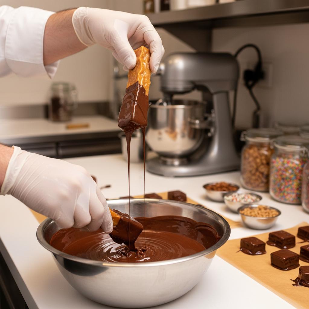 - Patience with Dipping Don’t rush! Let excess chocolate drip off completely before placing the bar on the parchment paper. A gentle tap of the fork on the side of the bowl helps.