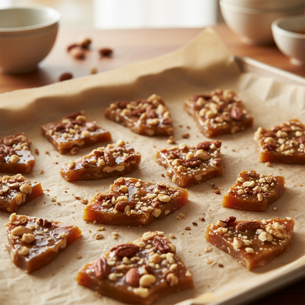 - Break Apart: Once fully hardened, lift the parchment paper from the pan. Break the toffee into irregular pieces using your hands or a sharp knife.