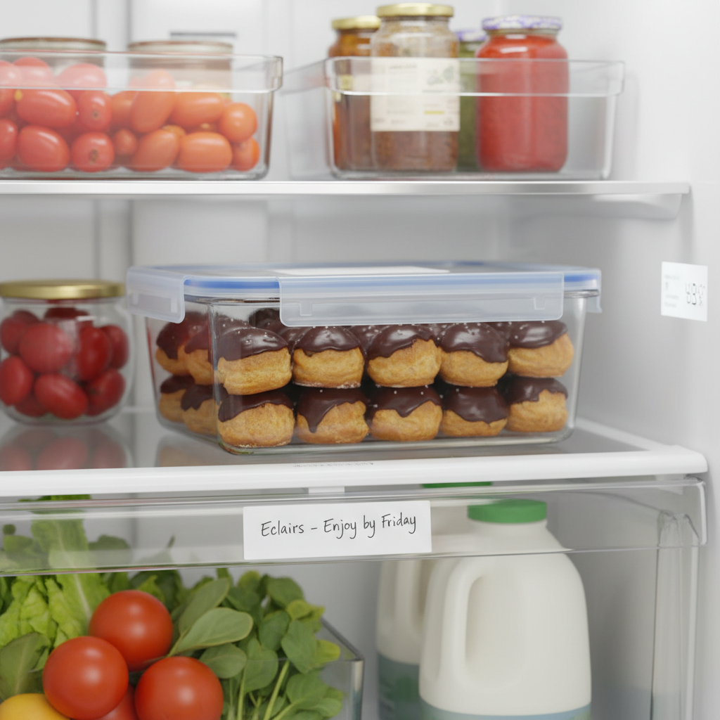 - Filled and Glazed Eclairs: Store in an airtight container in the refrigerator for up to 2-3 days. The pastry will soften slightly over time.