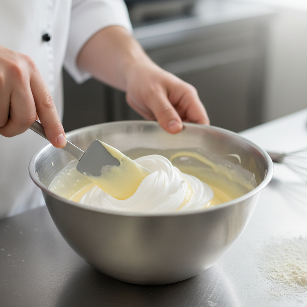 • Gentle Folding– Think of folding as cutting through the mixture and lifting from the bottom, rather than stirring. This preserves the air in the meringue.