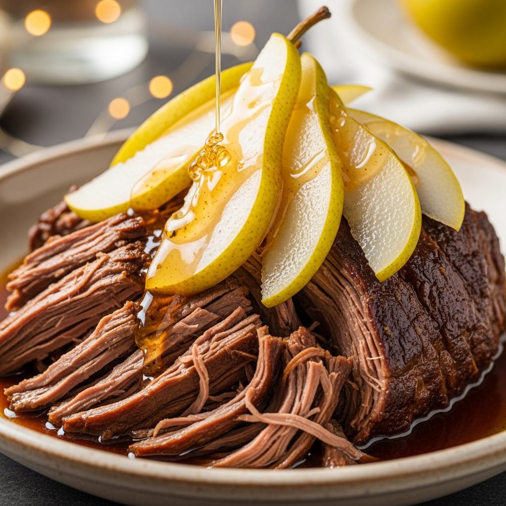 In Korean cooking, Asian pears are frequently used as a natural tenderizer due to their enzymes. Grating an Asian pear into the braising liquid along with honey results in a pot roast that is incredibly soft. The natural sugars caramelize during the long cooking process, creating a beautiful mahogany crust on the meat. This version is particularly popular with children and those who prefer a milder, sweeter flavor profile without excessive spice.