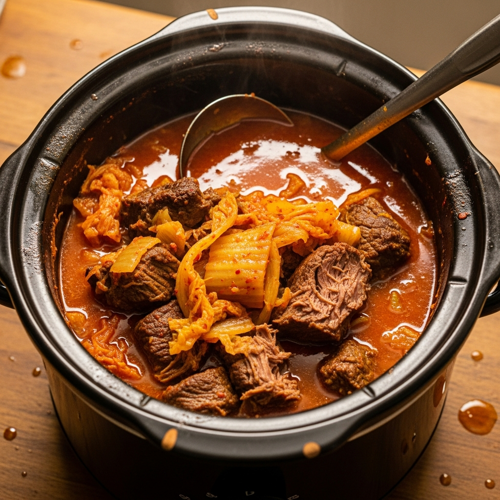 While traditionally made with beef, a Korean-style roast can also utilize pork shoulder or belly. Braising the meat with well-fermented kimchi allows the acidity of the cabbage to cut through the richness of the fat. The kimchi softens into a melt-in-your-mouth consistency alongside the meat, creating a one-pot meal that is sour, spicy, and deeply satisfying. This is a perfect set-it-and-forget-it recipe for busy weekdays.