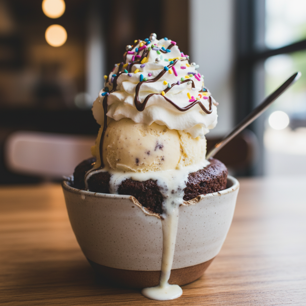 - A Scoop of Ice Cream Vanilla bean or chocolate ice cream is a classic pairing that melts into the warm cake.