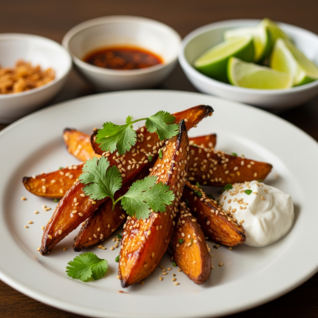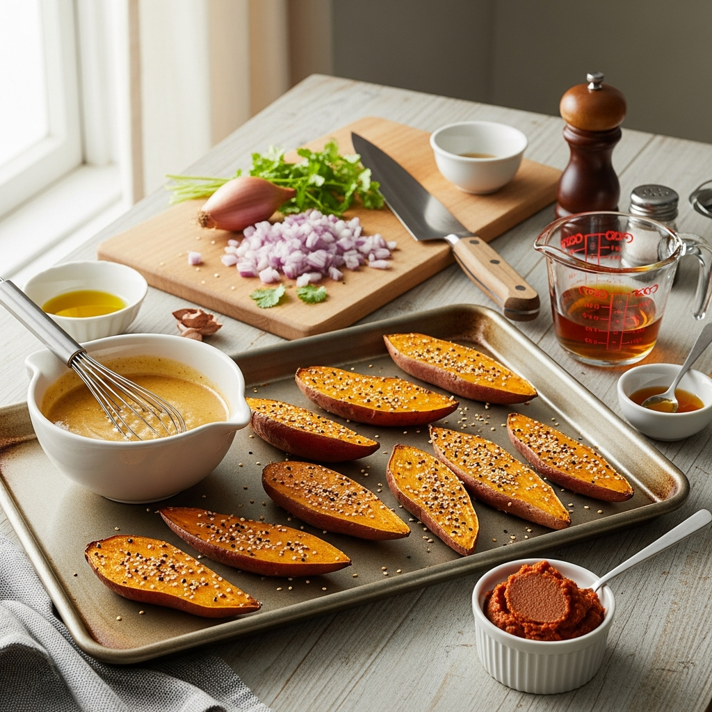 A little maple syrup or agave nectar enhances the natural sweetness of the potatoes and helps the glaze caramelize beautifully. Rice vinegar adds a touch of acidity to brighten the flavors. Soy sauce or tamari (for a gluten-free option) boosts the umami and saltiness. Fresh ginger and garlic bring aromatic depth.