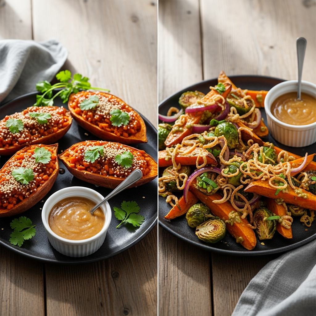 A little maple syrup or agave nectar enhances the natural sweetness of the potatoes and helps the glaze caramelize beautifully. Rice vinegar adds a touch of acidity to brighten the flavors. Soy sauce or tamari (for a gluten-free option) boosts the umami and saltiness. Fresh ginger and garlic bring aromatic depth.