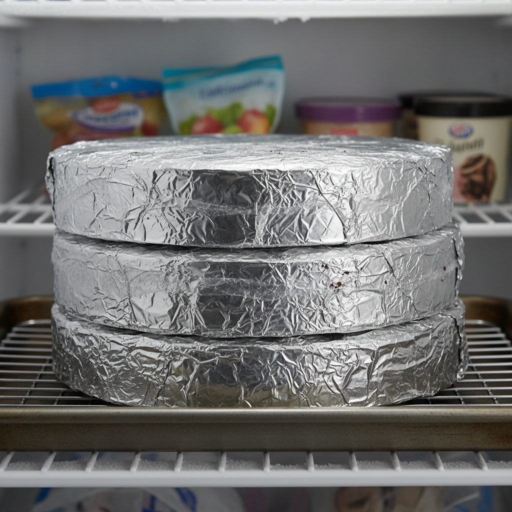 • Cake Layers– Once completely cooled, wrap unfrosted cake layers tightly in plastic wrap, then in aluminum foil. Freeze for up to 2-3 months. Thaw overnight in the refrigerator before frosting.