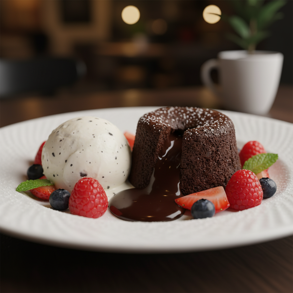 The beauty of the molten chocolate lava cake is that it’s spectacular on its own, but it also loves a good companion! Here are some ideas: