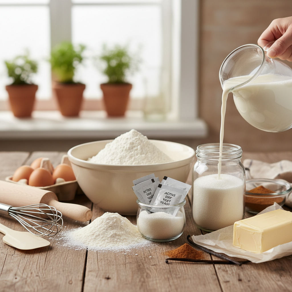 - Granulated Sugar Sweetens the dough subtly and aids in yeast activation.