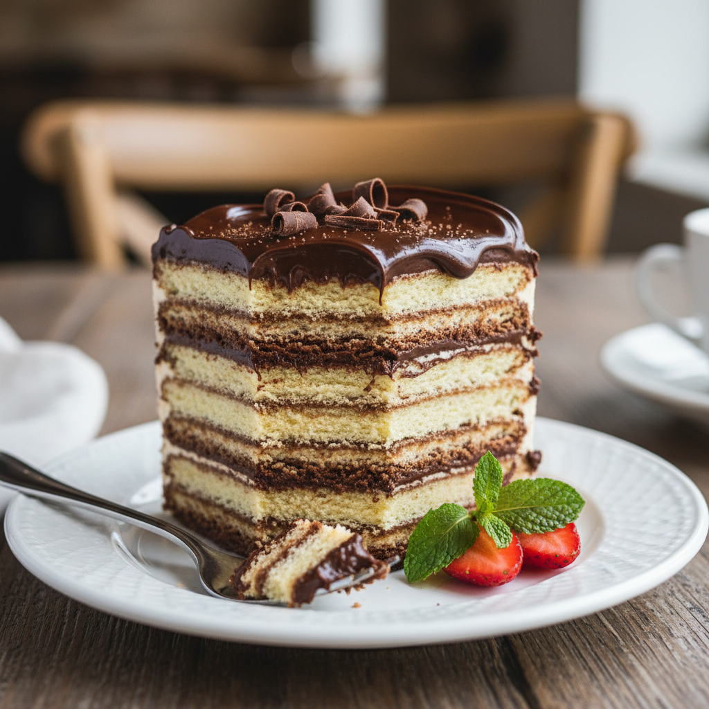 - Final Layer Place the last layer of wafers, then spread the remaining whipped cream evenly over the top and sides of the cake, creating a smooth, inviting finish.