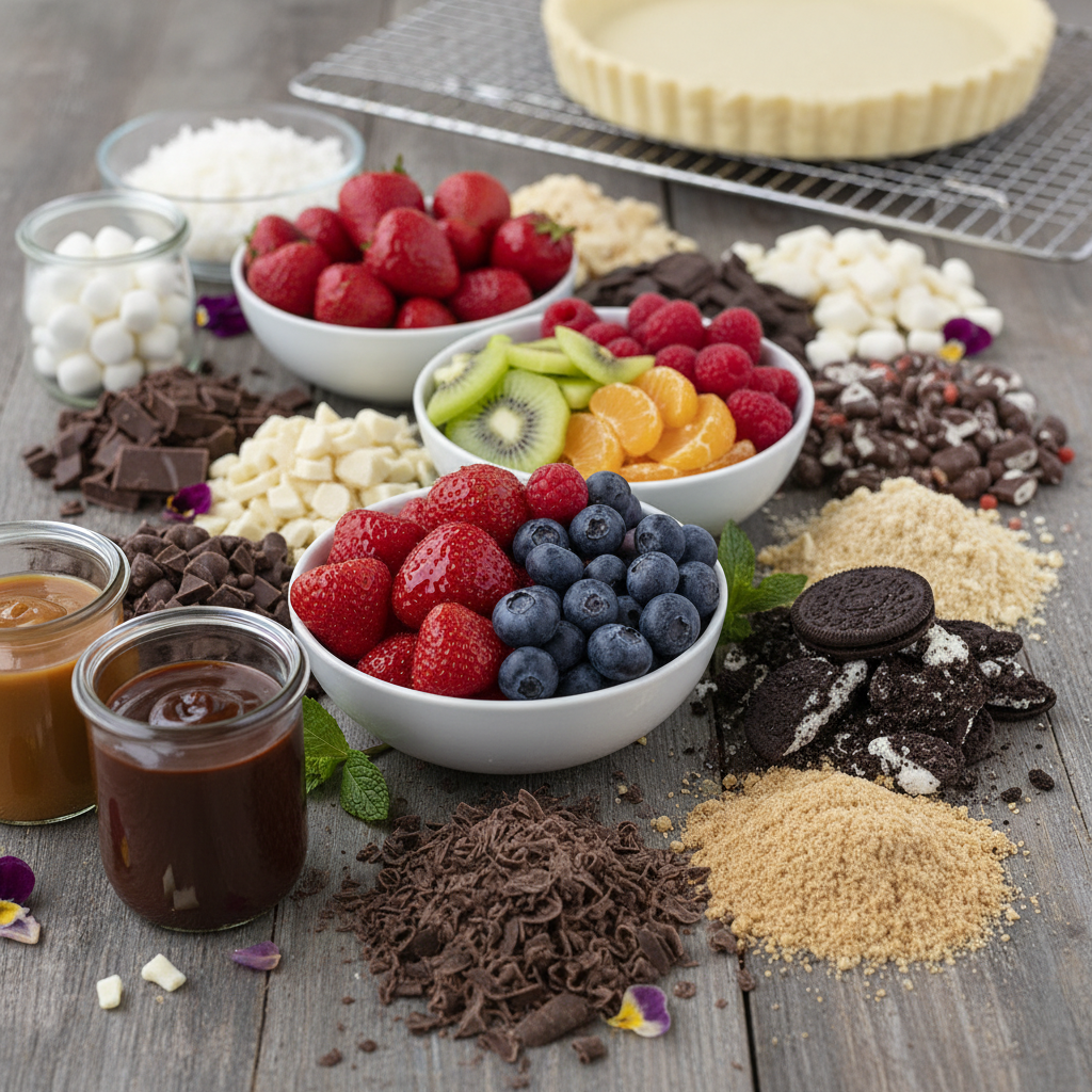 - Fresh Berries A medley of fresh strawberries, blueberries, raspberries, or blackberries adds a burst of freshness and color.