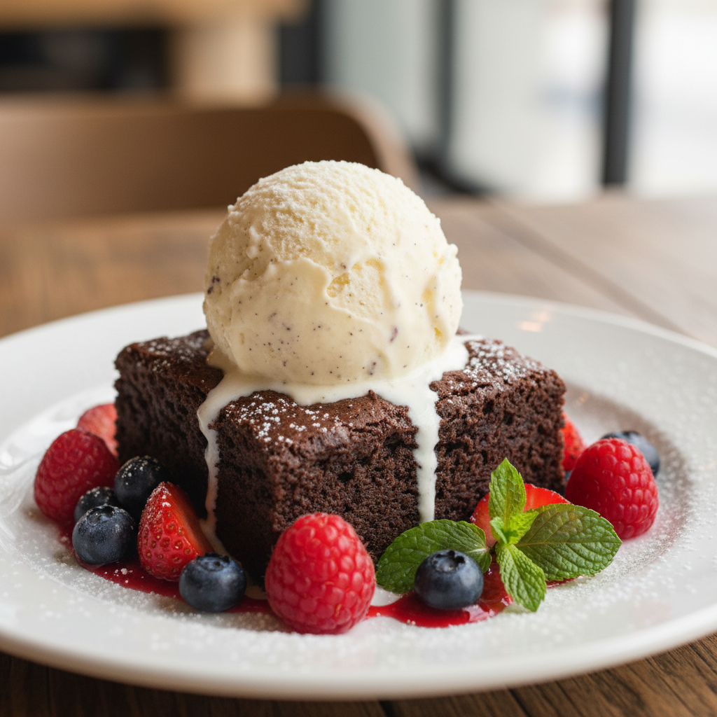 - With Vanilla Ice Cream A warm brownie with a scoop of cold vanilla bean ice cream is a classic pairing that never disappoints.
