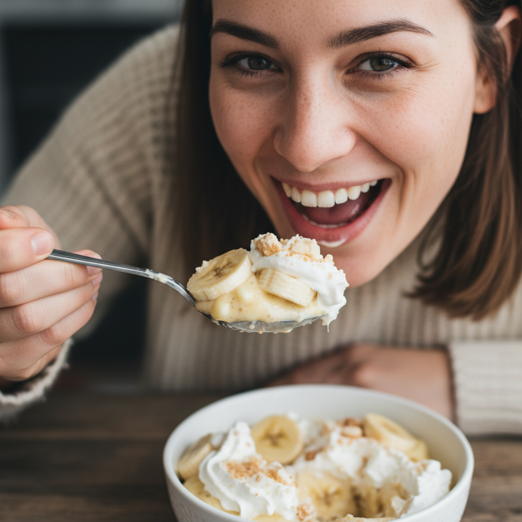 - Garnish and Serve Before serving, top with the remaining whipped topping. For extra flair, you can add a few extra vanilla wafers or banana slices as a garnish.