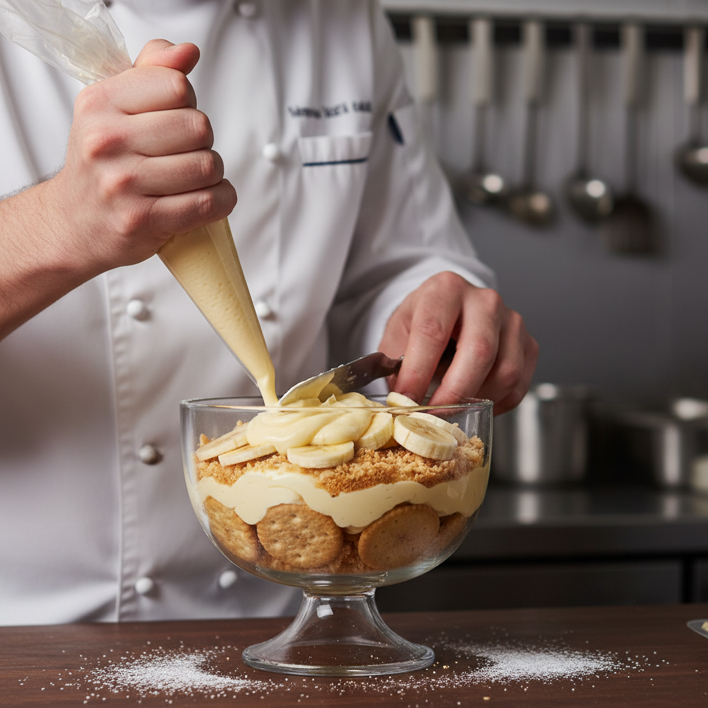 - Layer the Pudding In your chosen serving dish, start with a thin layer of pudding mixture on the bottom.