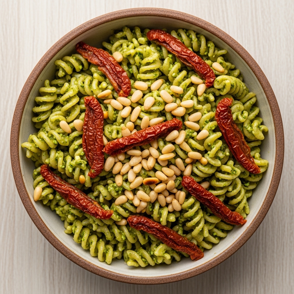 If you have leftover pasta in the refrigerator, this meal comes together in seconds. Toss cold rotini or penne with store-bought basil pesto, halved sun-dried tomatoes, and toasted pine nuts. The herbaceous nature of the pesto provides a cooling effect, while the sun-dried tomatoes add a concentrated burst of flavor that requires no additional preparation time.
