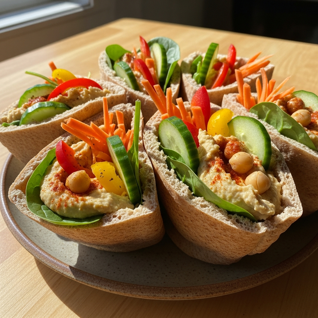 Pita pockets are excellent for containing messy ingredients. Fill a whole-pitta with a generous portion of roasted red pepper hummus and stuff it with shredded red cabbage, grated carrots, and sliced bell peppers. This vegan-friendly option is packed with micronutrients and provides a crunchy, satisfying texture in every bite.