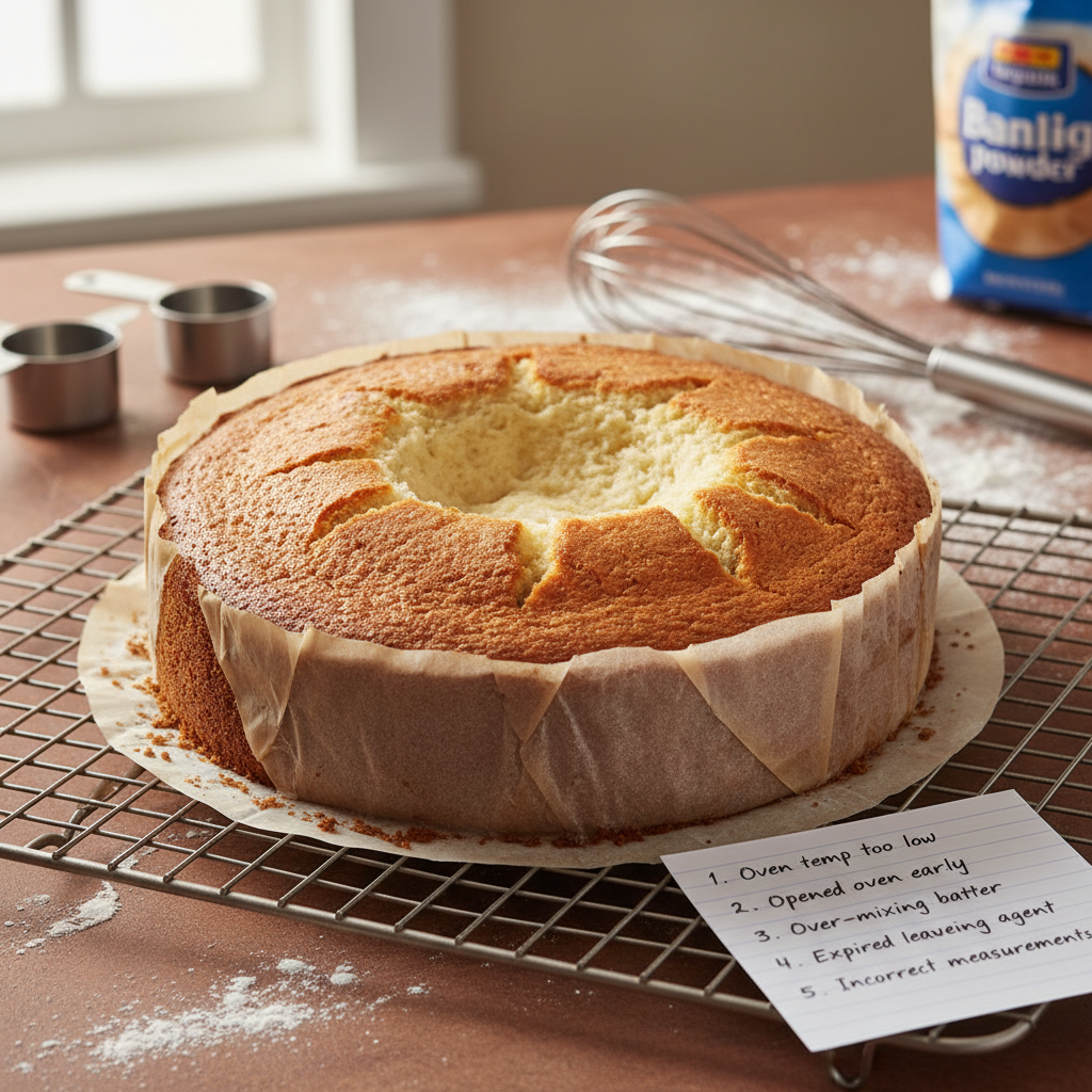 - Opening the Oven Door Too Early The sudden temperature change can cause your cake to sink, especially in the first 30 minutes of baking.