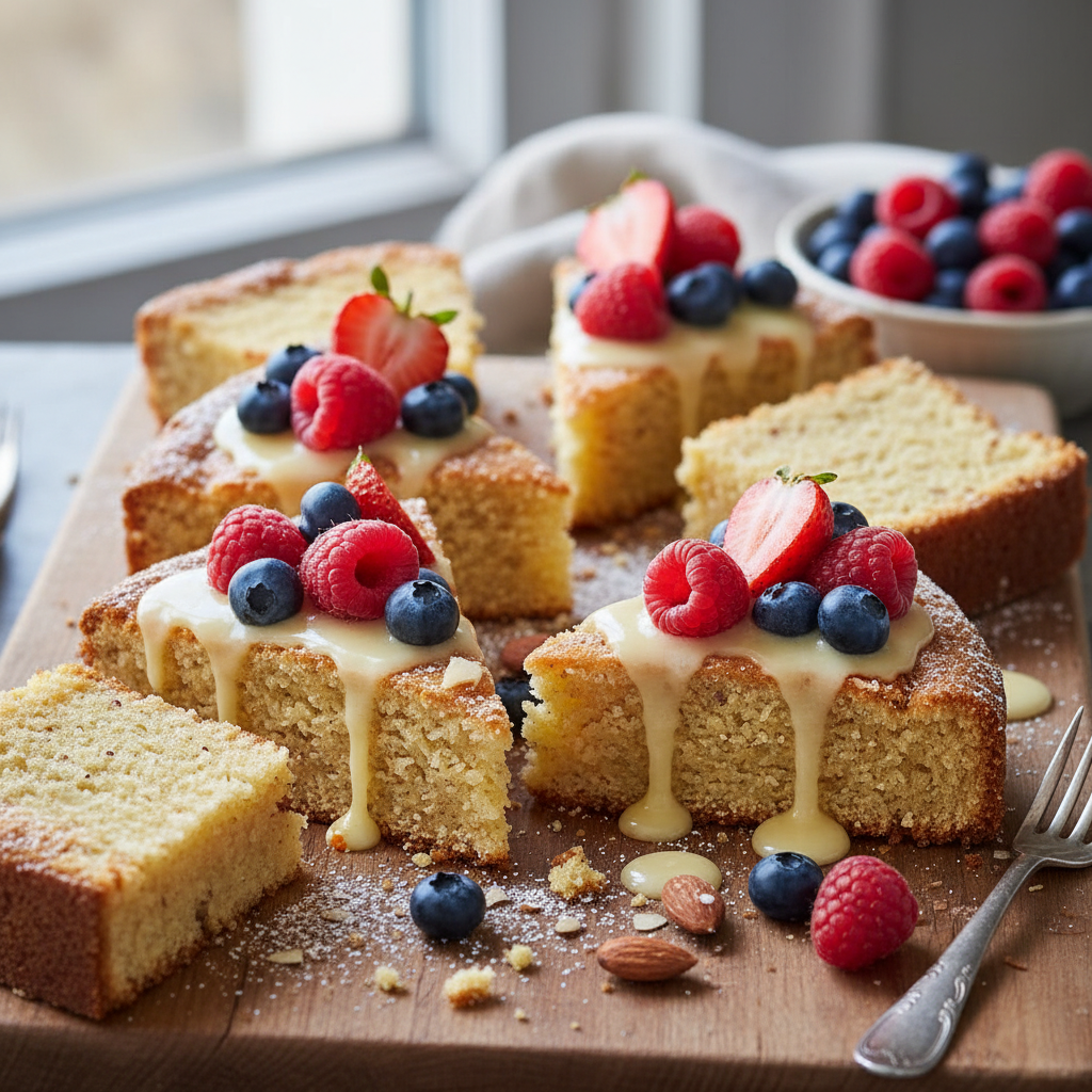 This simple almond cake is incredibly versatile and pairs beautifully with many accompaniments.