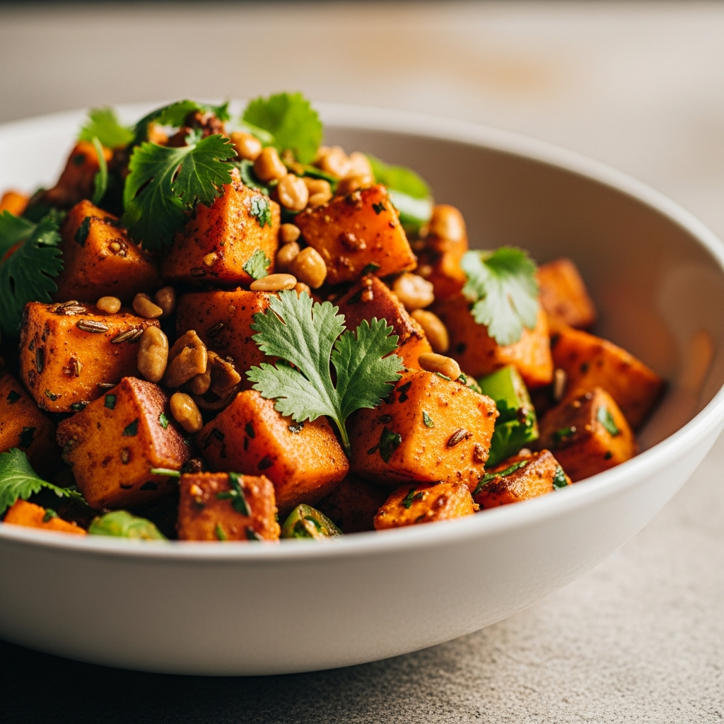 Roast sweet potatoes with a generous amount of smoked paprika, garlic powder, and a dash of cayenne. After roasting, stir in finely diced red onion, plenty of fresh cilantro, and a drizzle of your favorite BBQ sauce (optional, but delicious!). Dress with a simple apple cider vinegar and olive oil dressing to balance the smoky flavors.