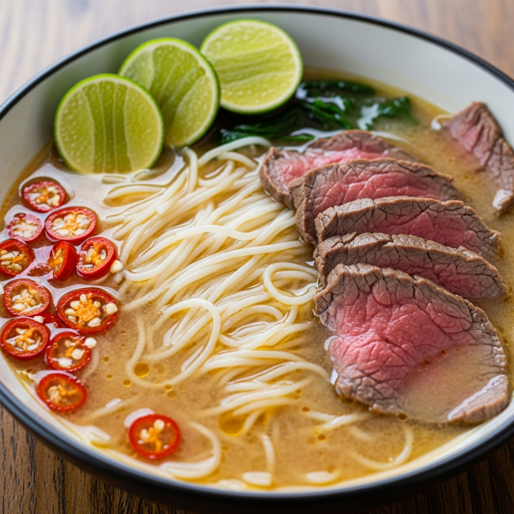 Inspired by Southeast Asian flavors, this version uses the sharp, piercing heat of Thai bird s eye chilies. The heat is balanced with a generous squeeze of fresh lime juice and a hint of lemongrass. The miso provides the salt and body, while the citrus and chili provide a high-frequency finish. This is a lighter, more refreshing take on the spicy beef noodle bowl that focuses on brightness and immediate heat rather than slow-burning spice.