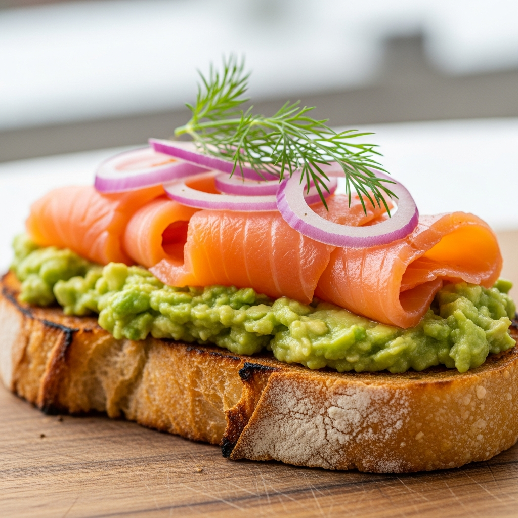 A staple of modern brunch, this dish combines healthy fats with high-quality protein. Use thick-cut sourdough bread as a base, layering smashed avocado with thin ribbons of smoked salmon. Garnish with pickled red onions, capers, and fresh dill to enhance the aesthetic and flavor profile.