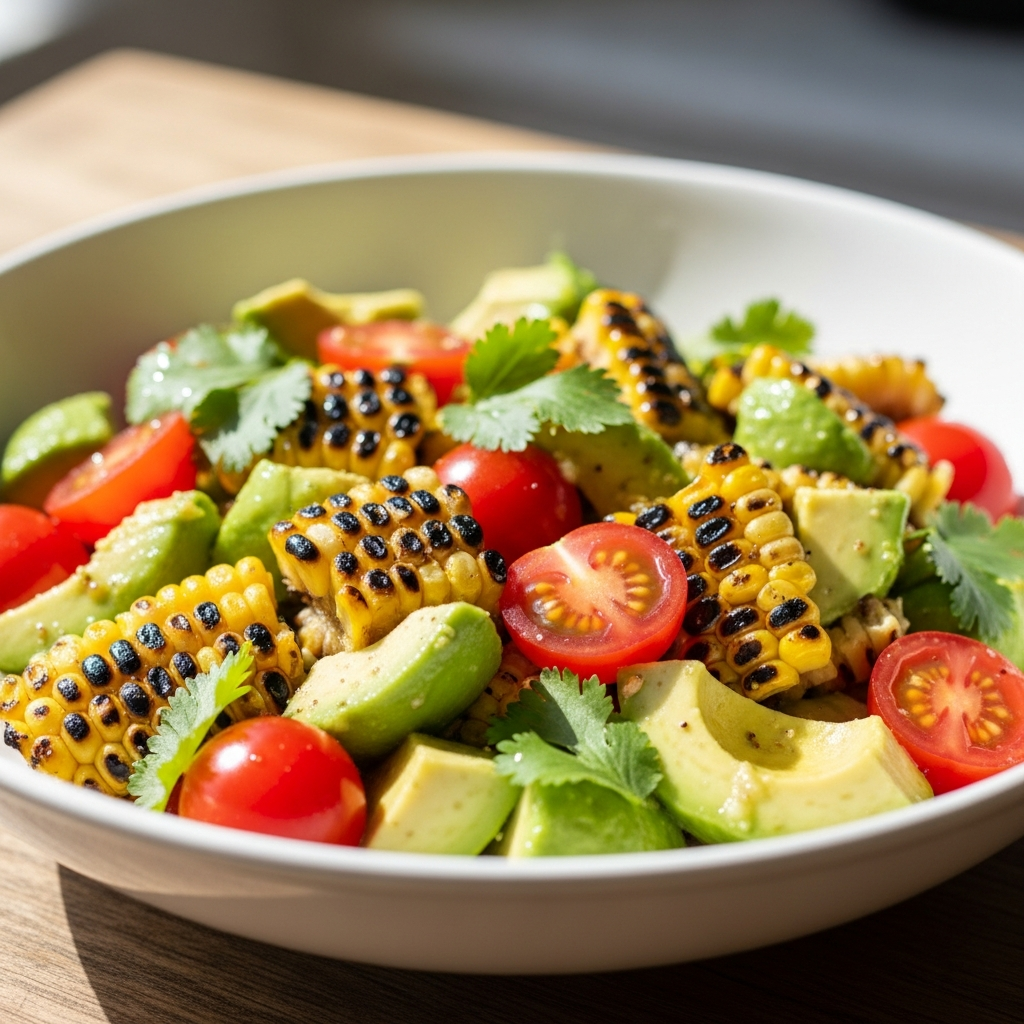 Take advantage of fresh sweet corn by grilling it before adding it to a salad. Combine the charred kernels with diced avocado, cherry tomatoes, and black beans. A cilantro-lime dressing ties all the smoky and fresh elements together perfectly.