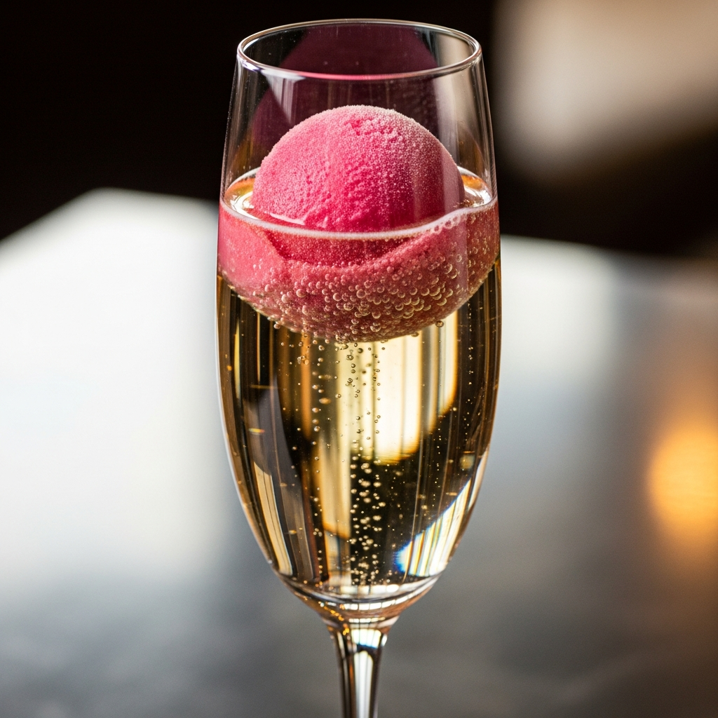 Upgrade the standard mimosa by adding a scoop of raspberry sorbet to a glass of chilled Champagne or Prosecco. As the sorbet melts, it creates a beautiful pink hue and adds a refreshing chill to the beverage.
