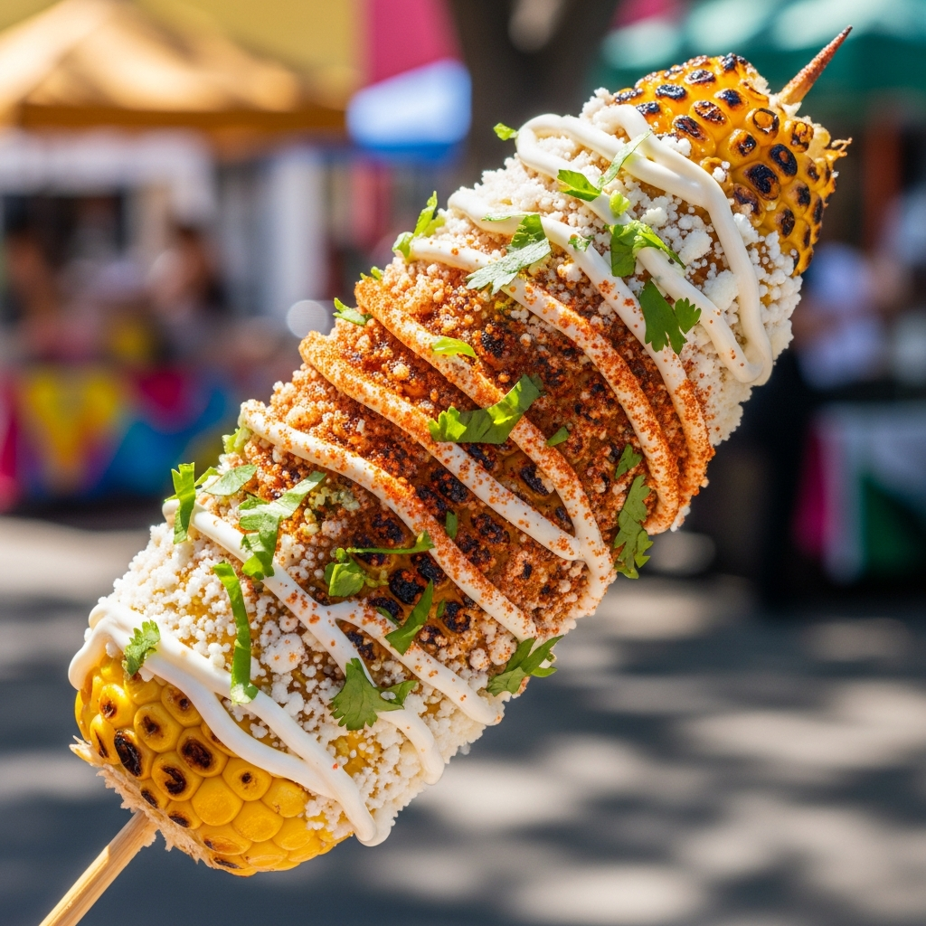 Let’s dive into a classic summer street food favorite: Elote! This grilled corn on the cob is creamy, spicy, tangy, and utterly addictive. It’s the perfect representation of vibrant street flavors.