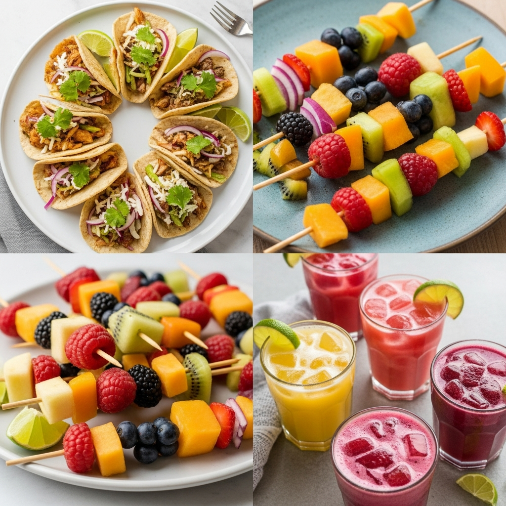 • Fruit Skewers: Thread colorful seasonal fruits like watermelon, pineapple, berries, and melon onto skewers. A drizzle of lime juice and a sprinkle of chili-lime seasoning elevate these simple treats.