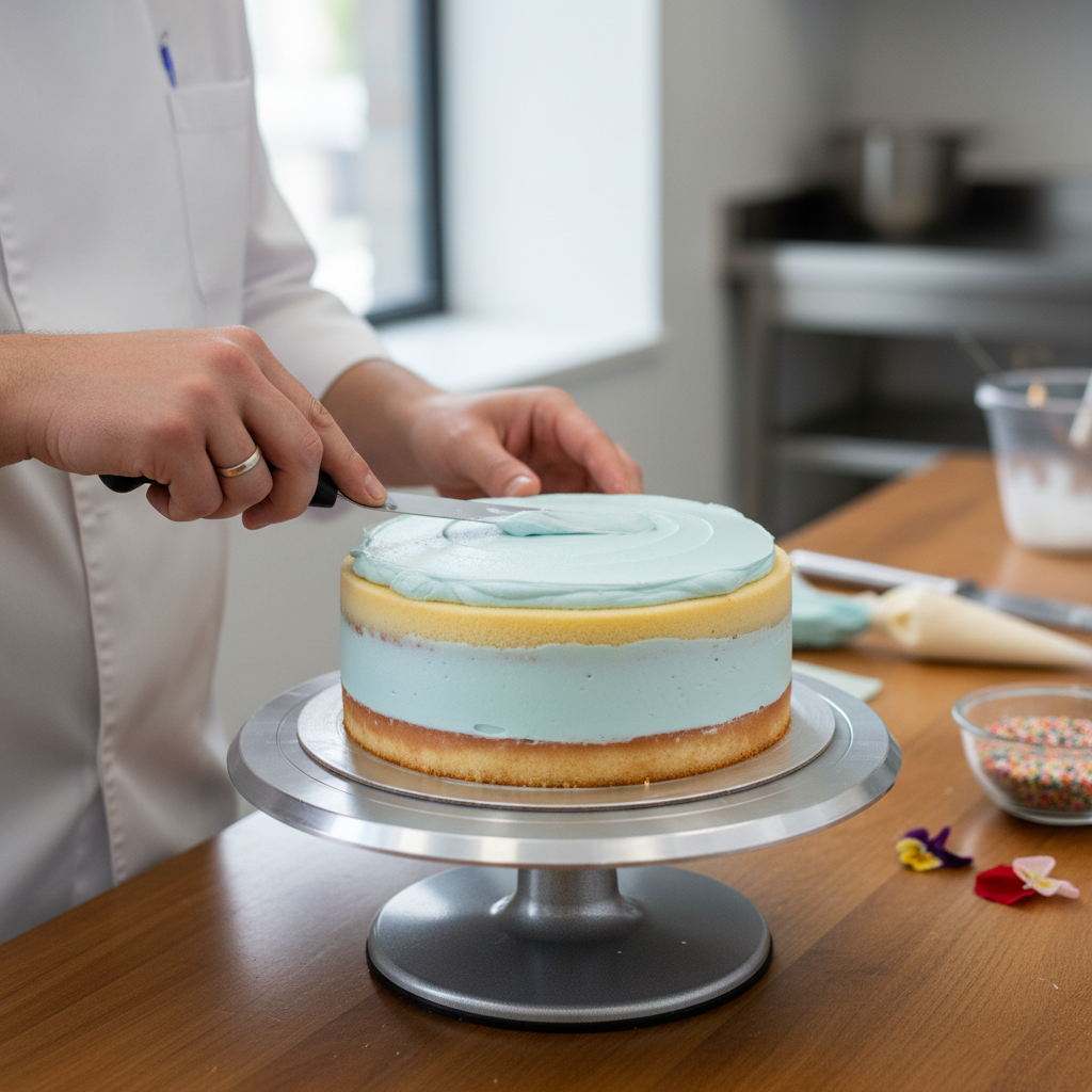 • Leveling Cakes For perfectly flat layers, use a cake leveler or a long serrated knife. Chill the cakes slightly before leveling for cleaner cuts.